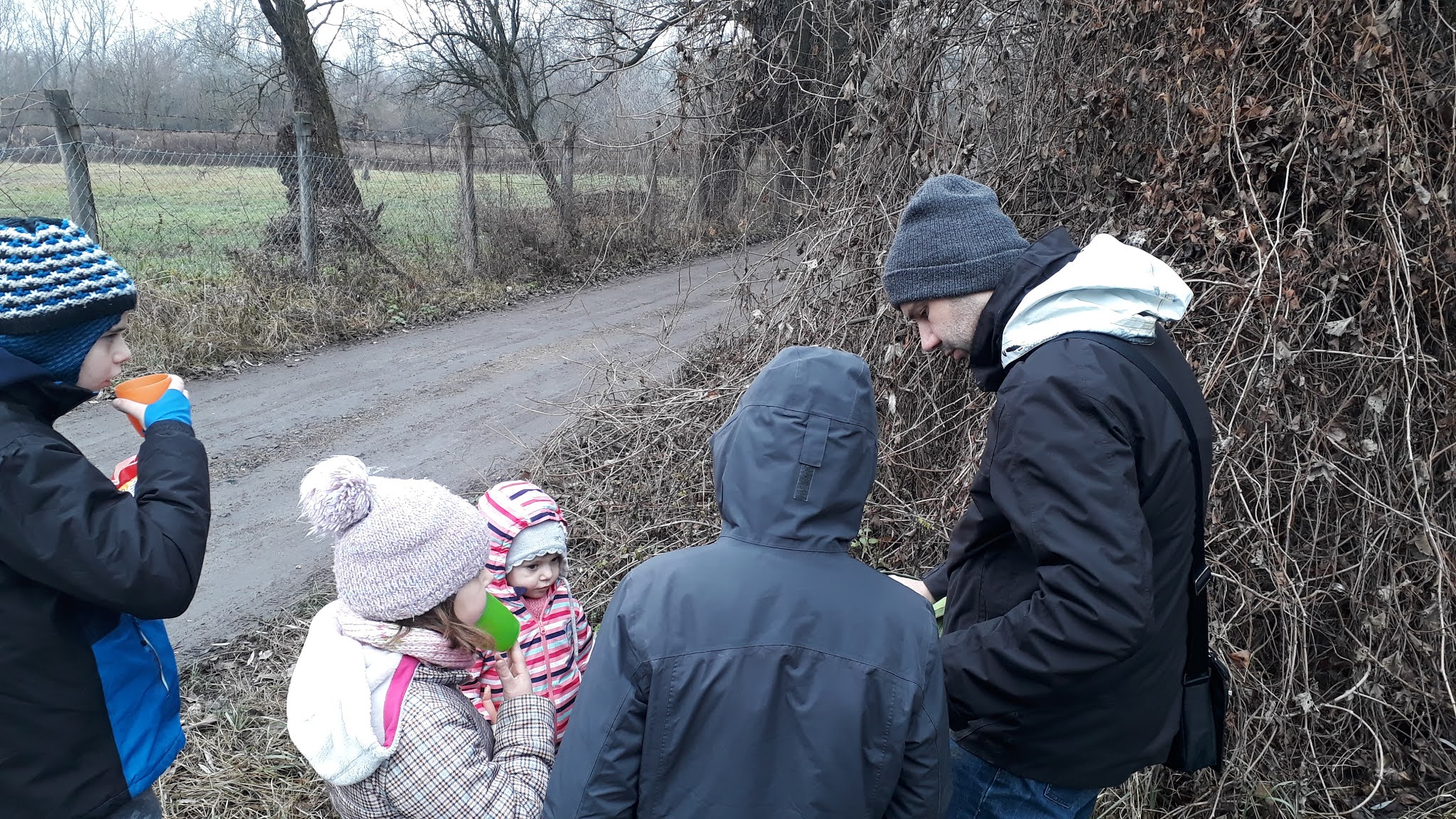 Ahogy autóval közeledtünk, láttuk, milyen jó, hogy nem a vonatos-gyalogos megoldást választottuk: járda valóban nincs, az állomásról (aminek nem sikerült meglátnunk a bejáratát) pedig zebra nélkül kellett volna átverekedni magunkat a saras túloldalra, ahonnan még mintegy kilométert gyalogolhattunk volna az autók mellett ebben a nem túl szívderítő időben. A Túzok utcában, még a kertészet-méhészet előtt hagytuk az autót, ám később láttuk, volt olyan kiránduló, aki a 150 m-rel beljebb található kis hídnál parkolt le. Parkolóhelyből nagyon kevés van, ha később, mikor végre visszatér a normális életünk, madárgyűrűzésre jöttök vagy természetvédelmi sétára gyülekeztek, bizony, lehet, hogy csak a Keresztúri út mentén tudtok majd megállni. Most mindenesetre nem volt tömeg, és úgy vélem, ezen a helyen nem is kell különösebben tömegre számítanotok.