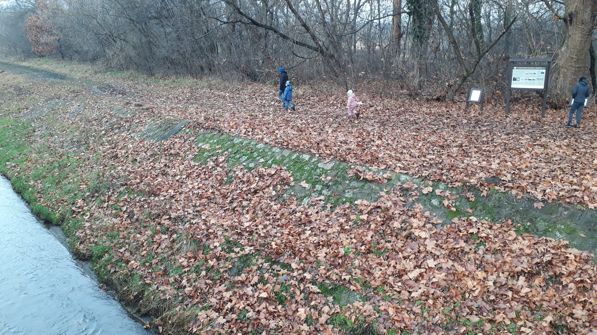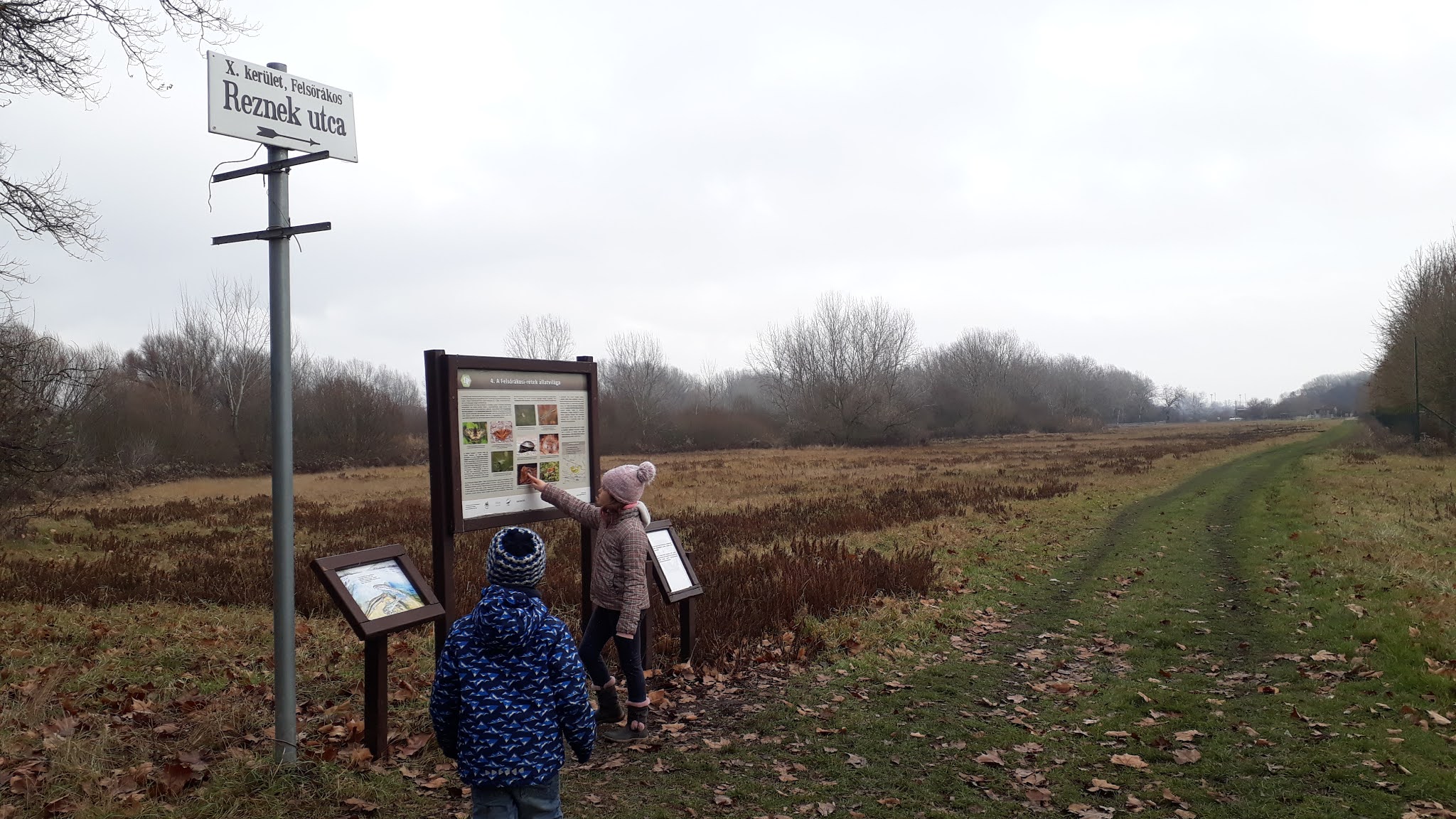 A 12 állomásos tanösvény első ismertető táblája a Rákos-patak hídjának túloldálán azonnal jól látható. A meder itt már épített, de a tanösvény-infók alapján megtudhattuk, hogy a Gödöllői-hegységben eredő pataknak csak a fővárosi szakasza csordogál épített mederben.