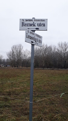 | Valószerűtlen helyszín valószerűtlen utcanévtáblákkal. |