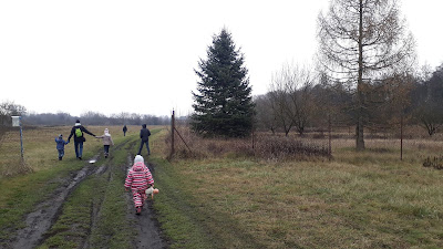| Elhagytuk a kertészet kerítését, itt már néhány lakóház mellett haladunk, tyúkok, kutyus, komposzt, kerti karácsonyfa. |