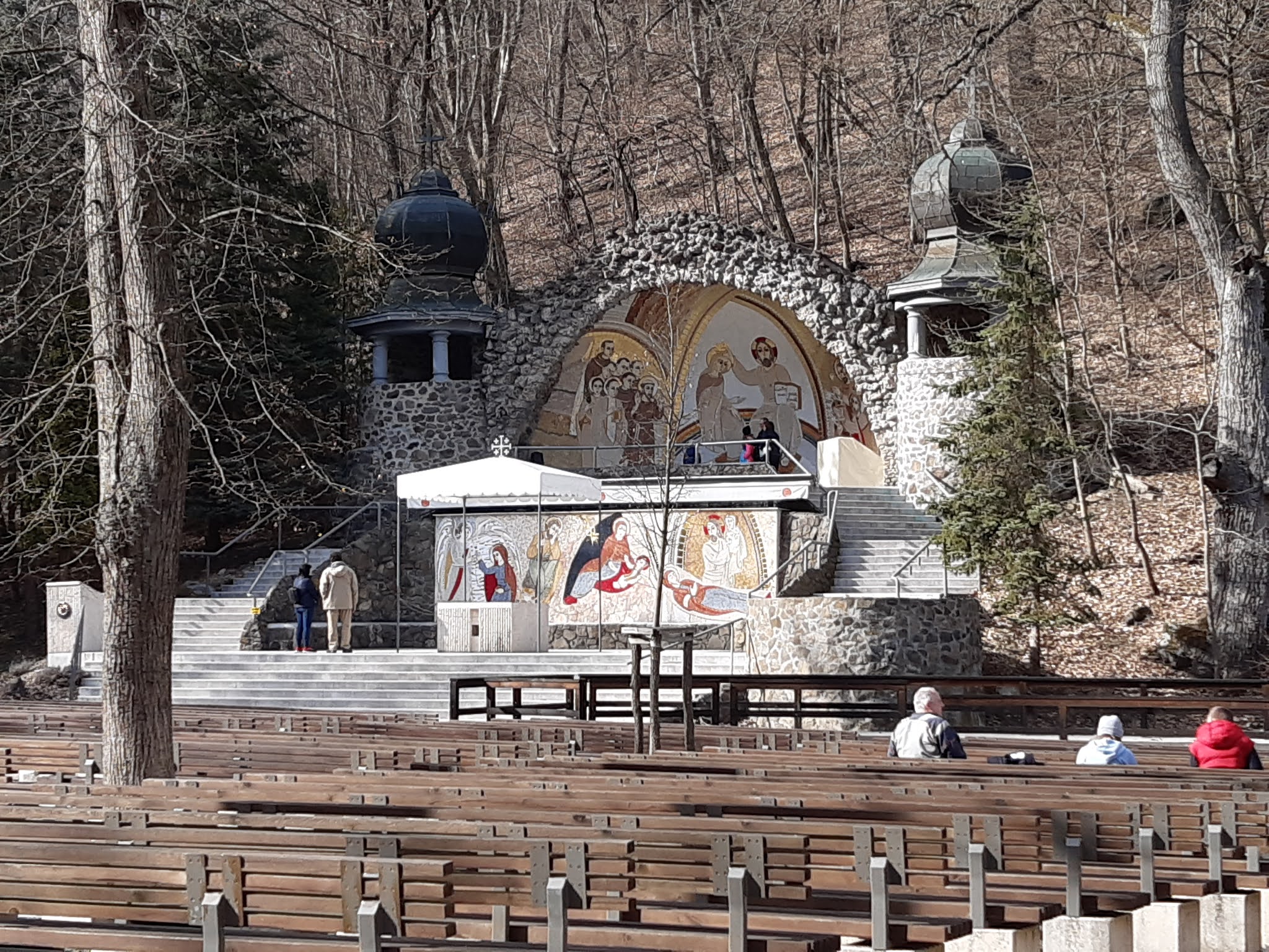 Sámsonházáról akár gyalog is át lehet menni egy hosszabb, komolyabb túra keretében Mátraverebély-Szentkútra, de ez most nem volt betervezve a napunkba. Egy rövid villámlátogatás/beköszönés Kisbárkányba a barátaink második otthonába (annak is a kertjébe, maszkban… ), majd irány Szentkút. Kicsit féltem, nem lesz-e tömeg a zarándokhelyen Virágvasárnap, de csak néhány család lézengett, a templomban pedig konkrétan csak mi voltunk abban a pár percben, amit ebben a zárt térben töltöttünk. Nyugalom, béke és áldás – ezeket hoztuk magunkkal a mátrai szent helyről.