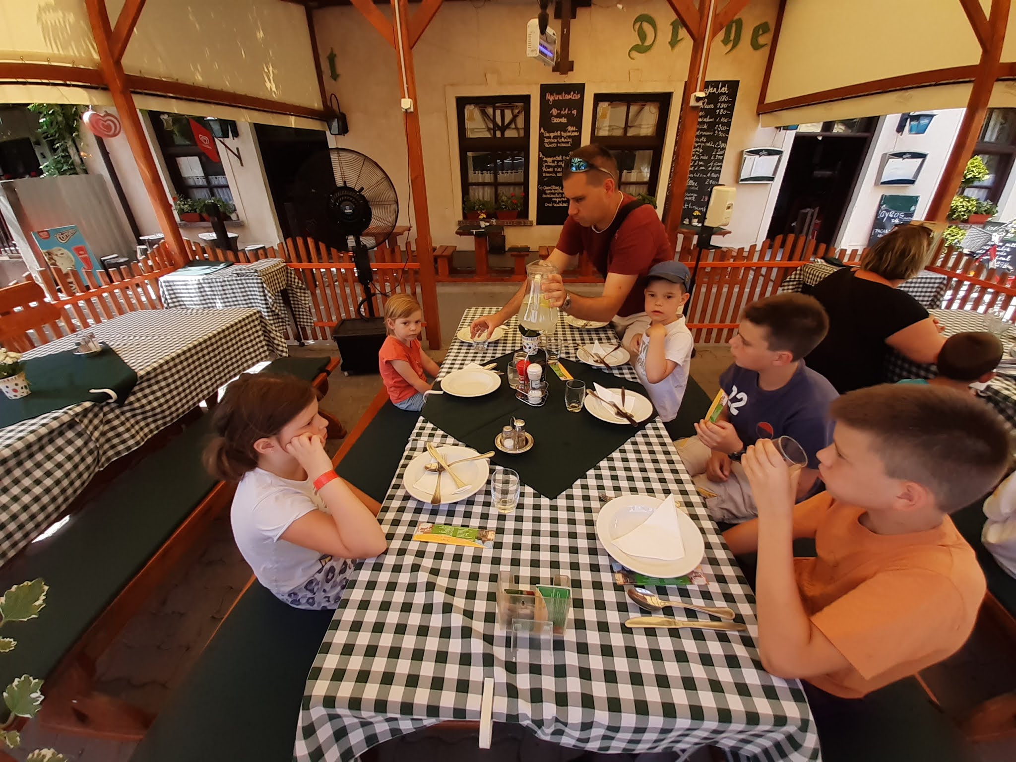 | Nagy asztalok, gyermekeket elfogadó, kedves személyzet. |