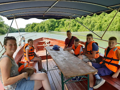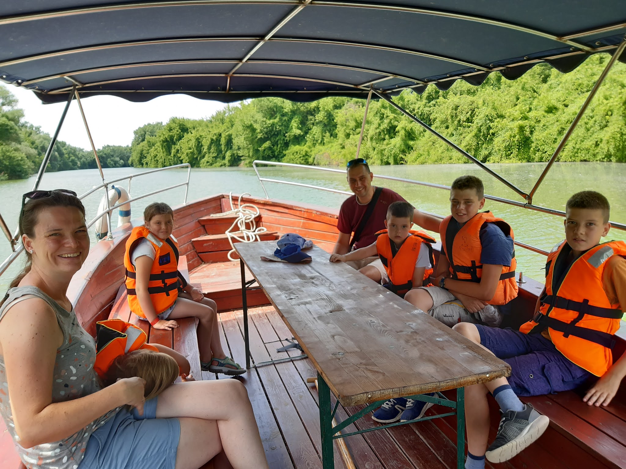 Kulturált konténeres wc, zuhanyzási lehetőség, kis büfé található a telepen, ahol épp tábor is zajlott. A gyerekek kaptak mentőmellényt, majd felszálltunk a hajóra, és indulás. Nagyon készültem sapkákkal, naptejjel, utóbb kiderült, feleslegesen: a kis hajón tökéletes árnyékot biztosított a ponyva.