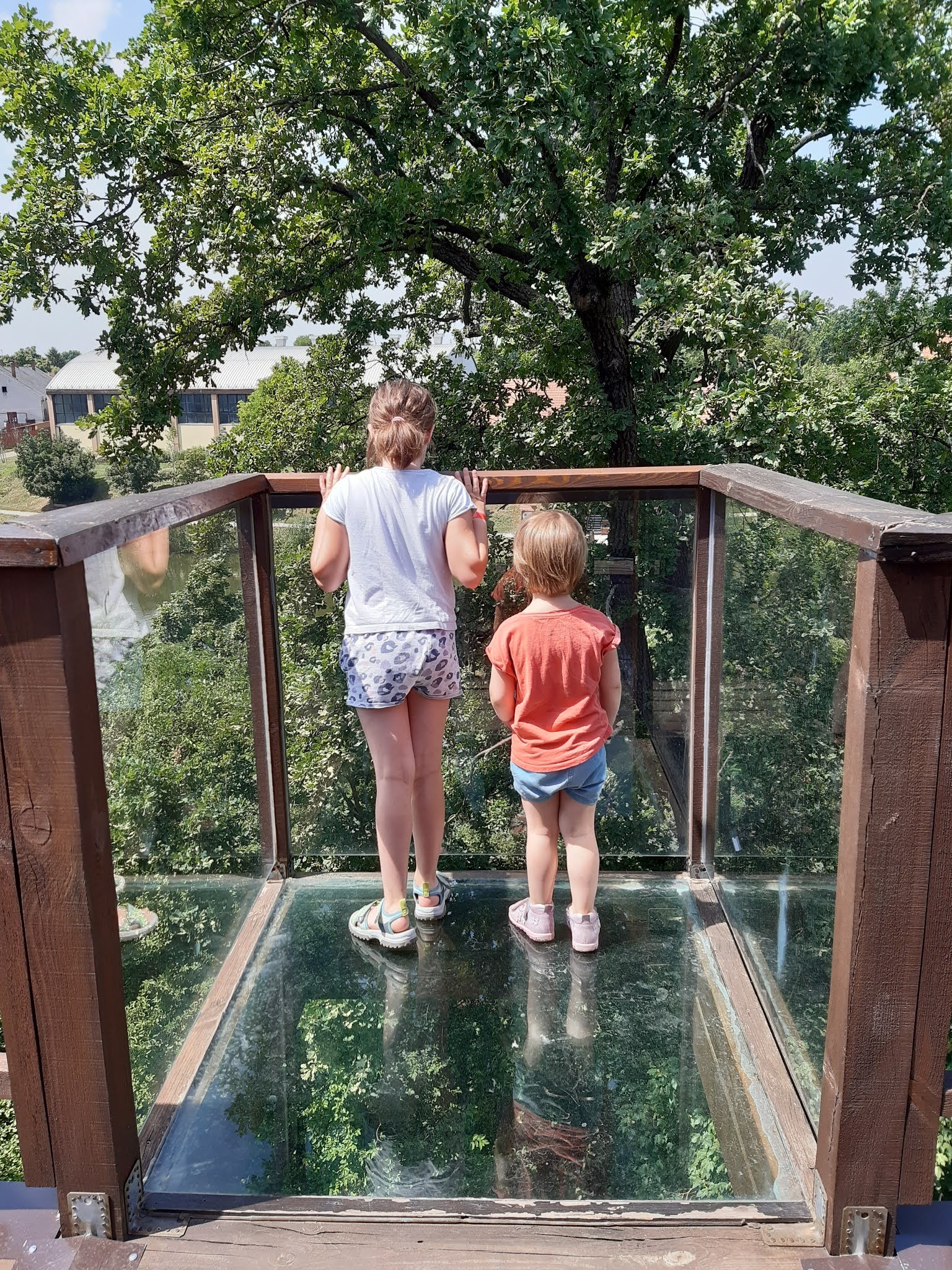 | A Kilátó tetején bátorságpróba! Jobbra, balra, előre és lent: üveg! |