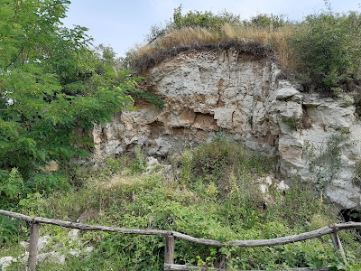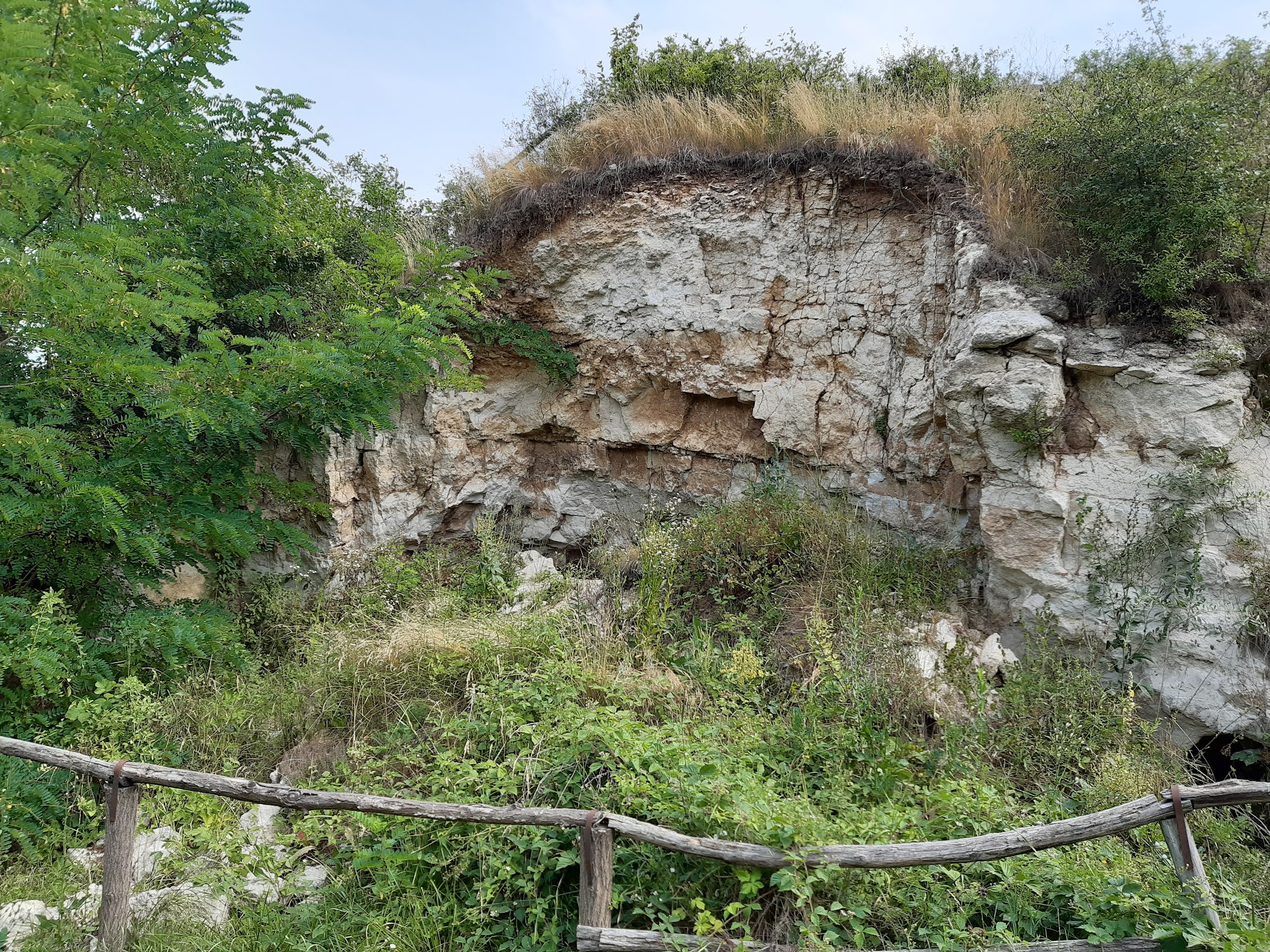 Tovább haladva a kis tanösvényen a régi bánya mellett vezetett el utunk. Ezt már teljesen benőtte az erdő, ha nincs ott az a jellegzetes fakerítés, bizony meg nem mondom, hogy a fák mögött egy felhagyott felszíni fejtés látható.