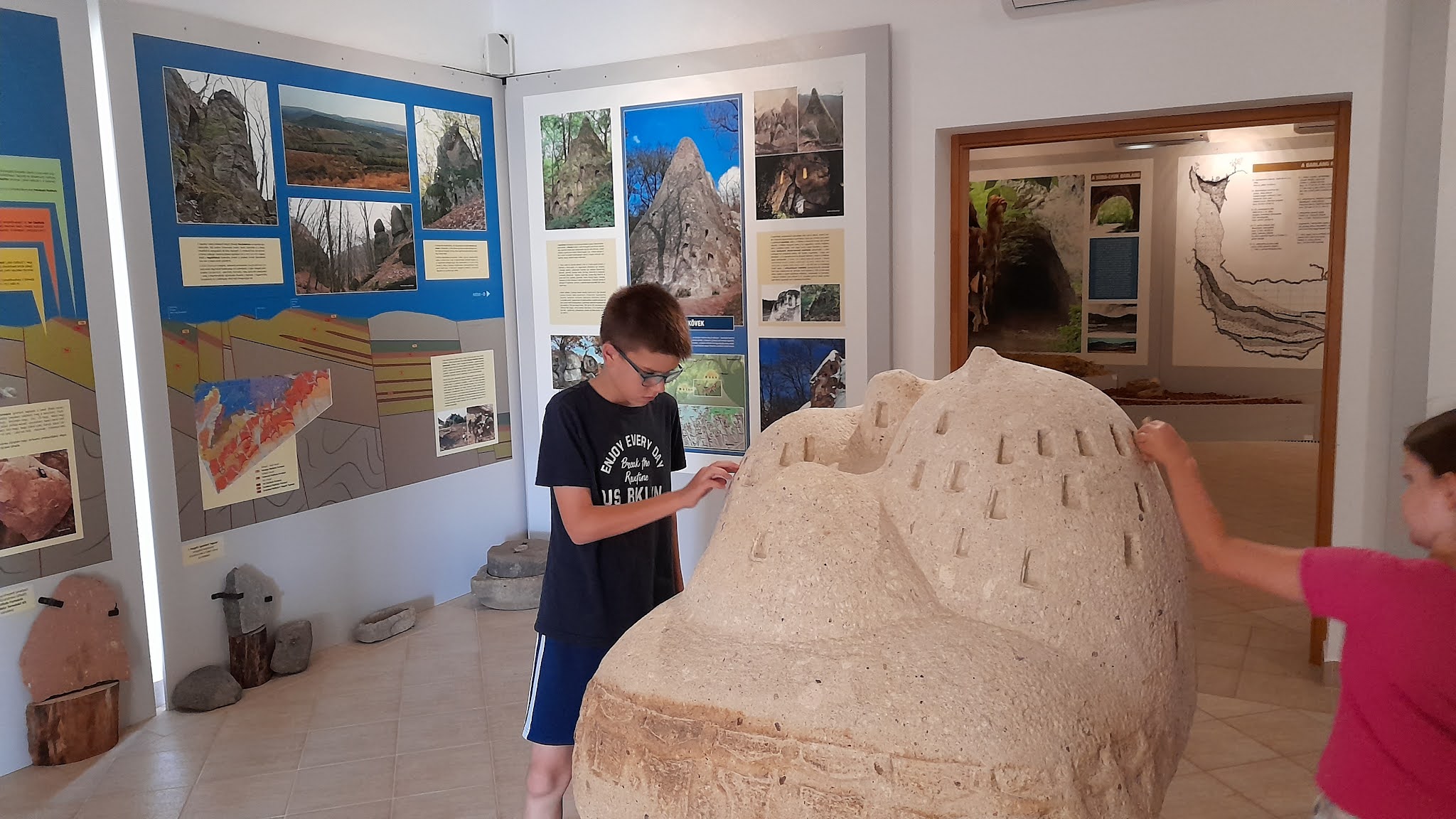 Másnap délelőtt nyugiban, pihenten megnéztük a látogatóközpont múzeumi részét, megtudtuk, mit hagytunk ki, mikor nem jutottunk el az előző napi őrületben a kaptárkövekhez, és csomó mindent olvastunk a Suba-lyukról is, ahová ezúttal szintén nem másztunk fel. (Látjátok, ilyen is van a Barangoló család életében, és ez is tök normális.)