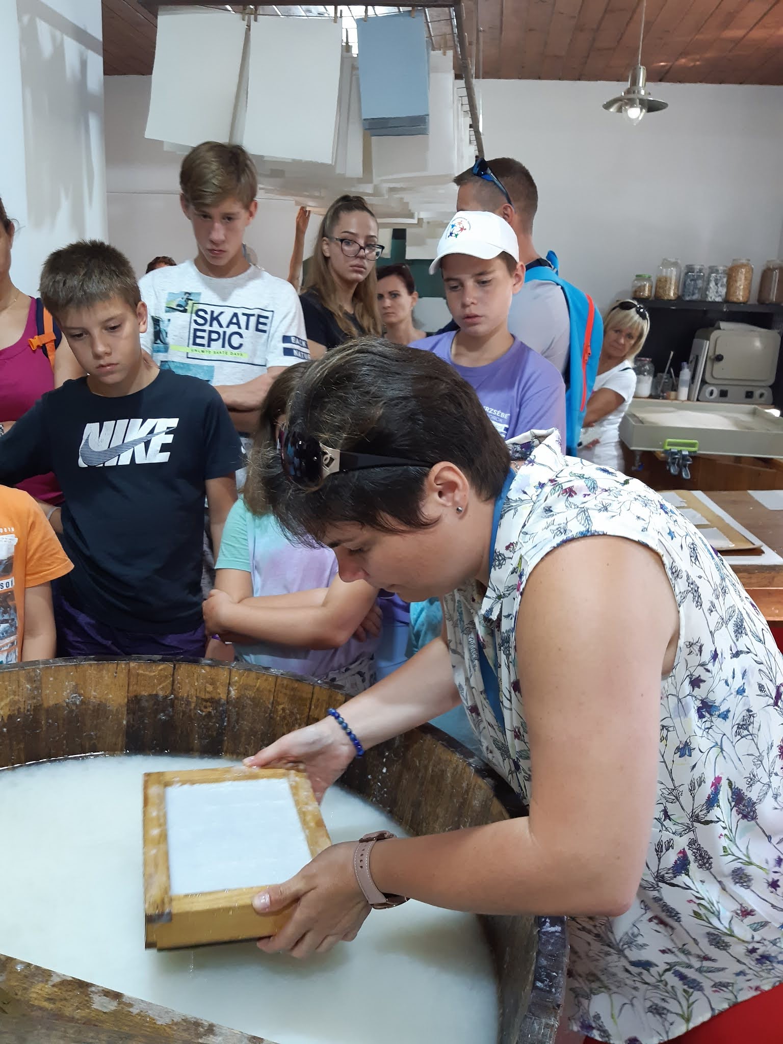 Túránk a papírmalomban kezdődött. Itt a merített papír készüléséről tanultunk. Számomra nagyon sok újdonság hangzott el!