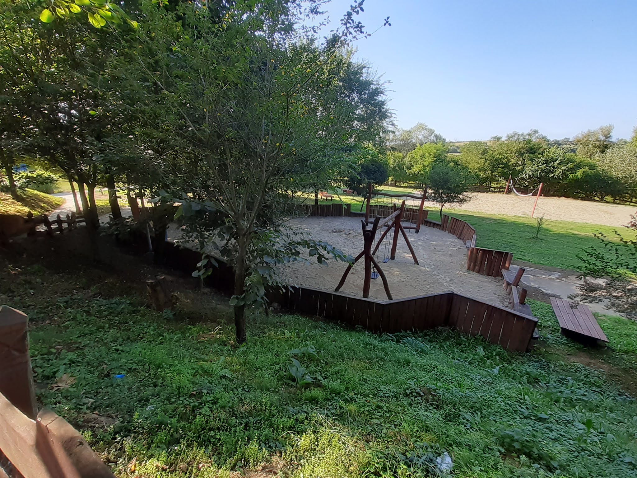 Bár nem használtuk, készítettem képeket a sportpályákról és a játszótérről, ami egy szinttel lejjebb található, mint a gyerekmedencék.