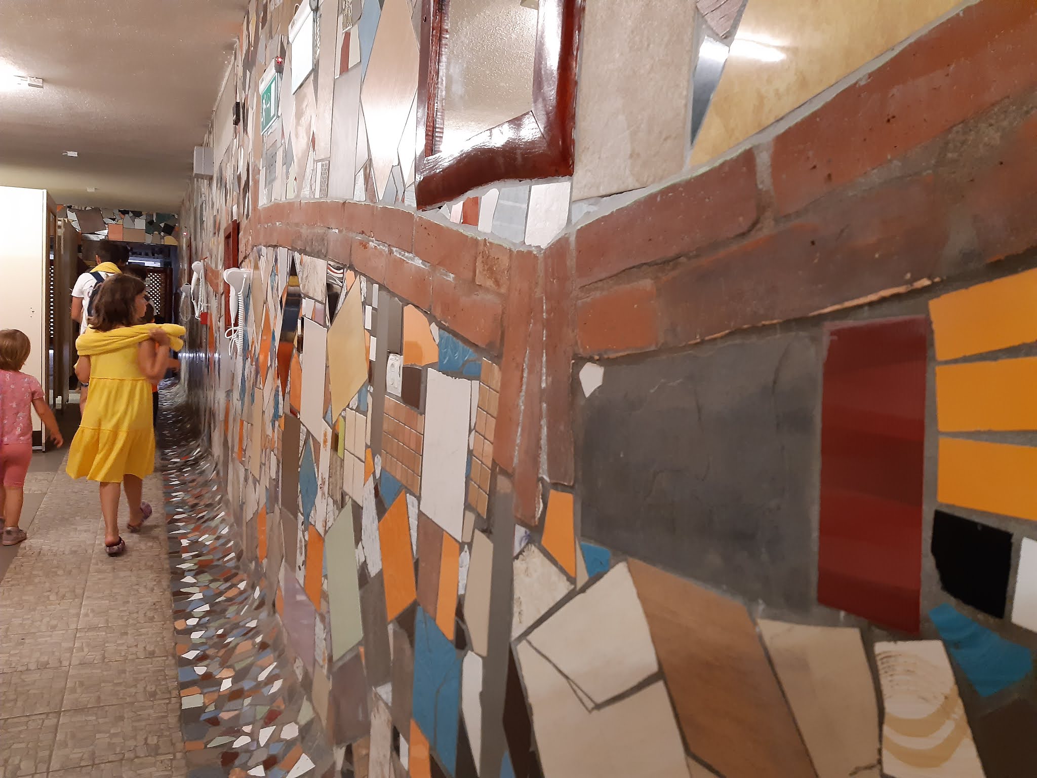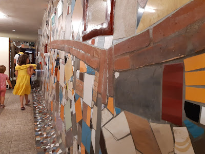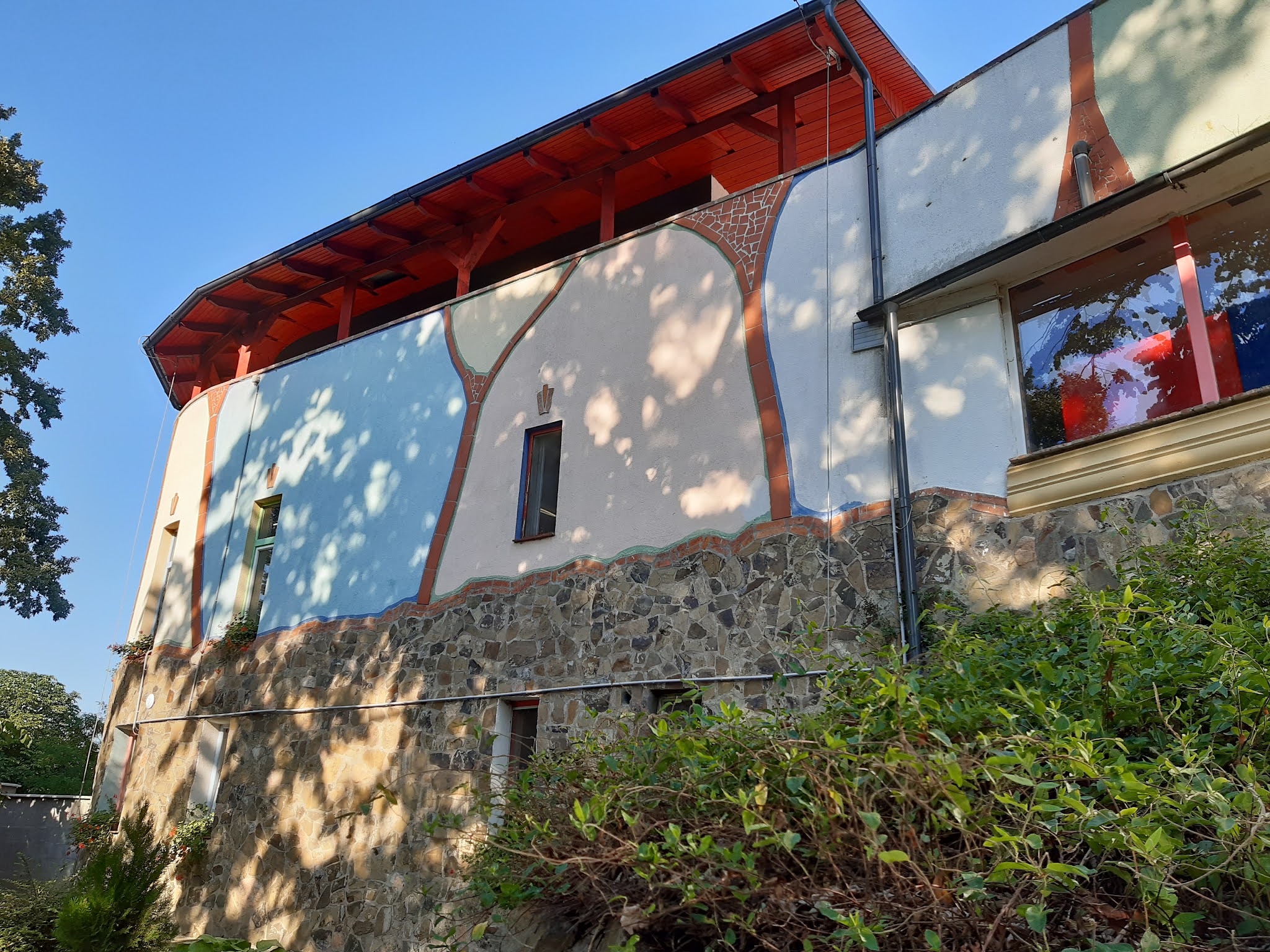 Számomra nagyon érdekes benyomást nyújtott a fürdő kül- és beltéri burkolata. Nehezen találom a szavakat, mert egyrészt szedett-vedettnek láttam a sok, különböző kőből kirakott mintát, másrészt mégis volt benne valami egységesség, ami megragadja a figyelmet. Nem vagyunk egyformák, nem kötelező, hogy mindenkinek minden tetsszen, ez az építészeti stílus – bár érdekesnek tartom – nem fog a kedvenceim közé tartozni.