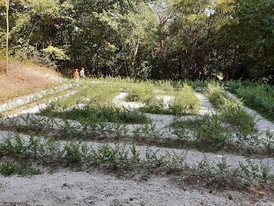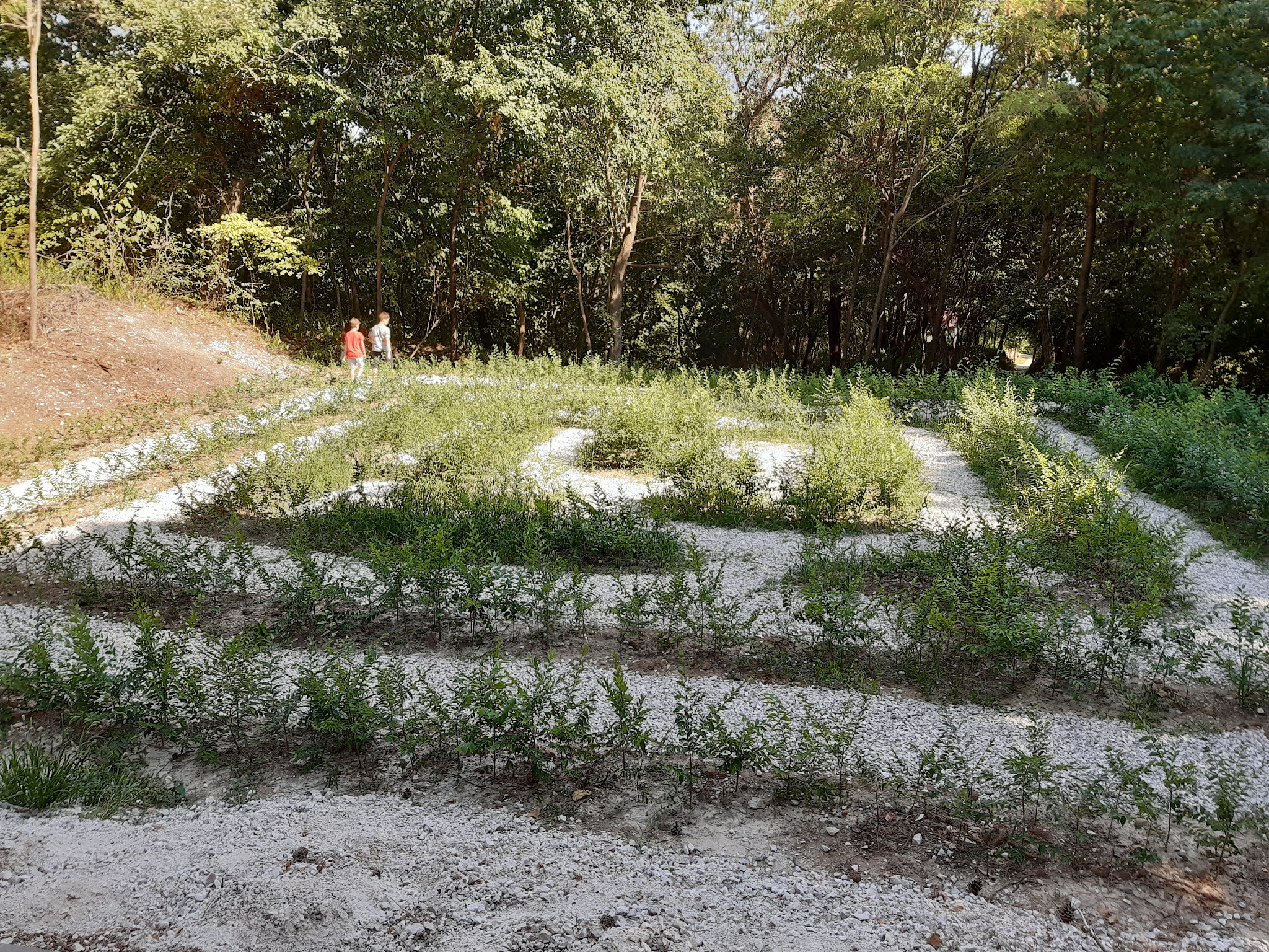 | Sövénylabirintus lesz itt, a frissen telepített növénykék egyelőre így néznek ki. |