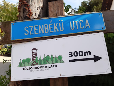 | A kilátó az ország egyik legkülönösebb nevű utcácsájának végében, az erdőben áll. NEM ÉRDEMES, sőt NEM SZABAD kocsival behajtani!! |