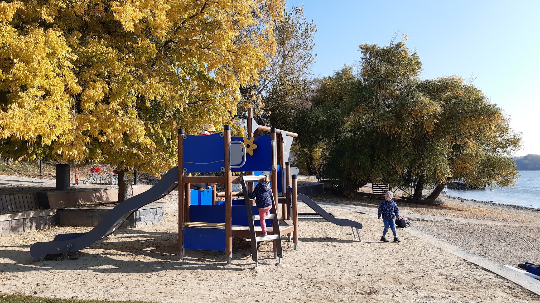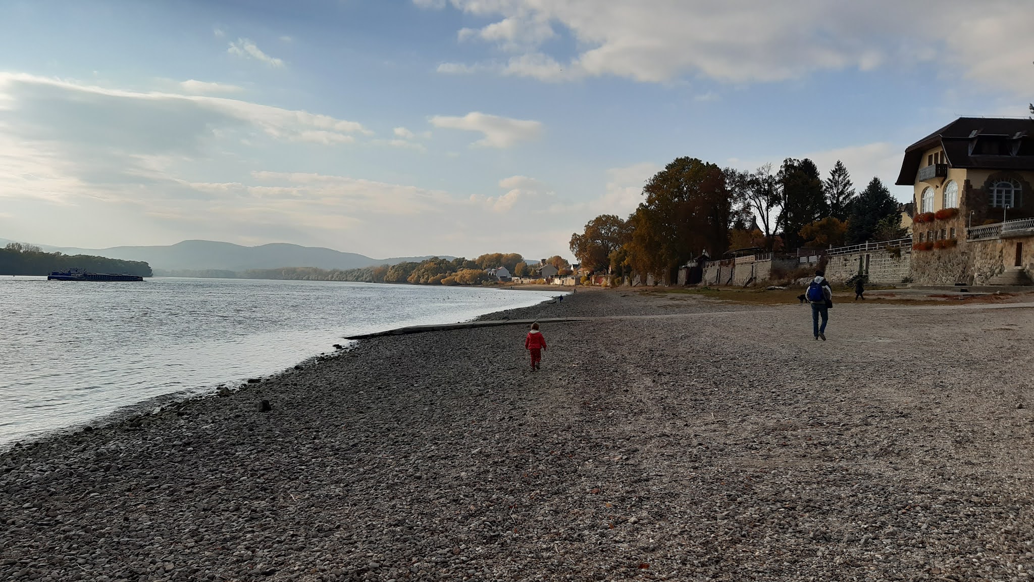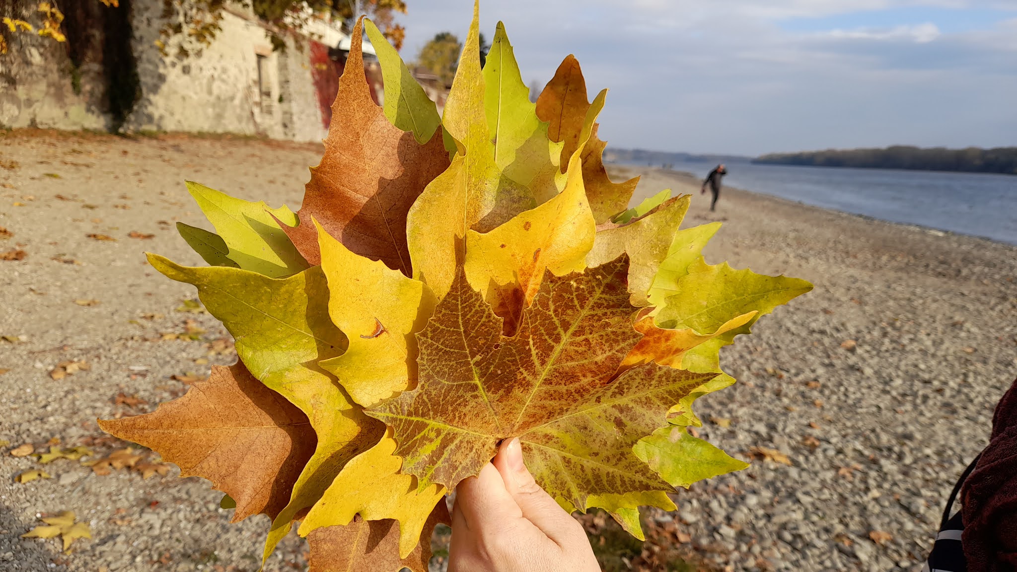 Mondhatjuk tehát, hogy egy őszünk teljesen kimaradt. Hiányzott a sok kirándulás, a színek, a levél- és termésgyűjtés, a kellemes séták, a lágy őszi szél érintése az arcunkon. Idén talán éppen ezért örülünk annyira minden egyes lehullott, színes falevélnek, minden egyes narancsba vagy bordóba öltözött fának, minden egyes begyűjtött termésnek, minden egyes megtett lépésnek a természet lágy ölén. Legjobban talán mind a vízpartra vágytunk, a dunai séták különösen vonzóak számunkra – ez bizonyára azért van, mert itt lakunk a közelében, a Duna-partra kiszaladni nekünk egyenlő a fejünk kiszellőztetésével.