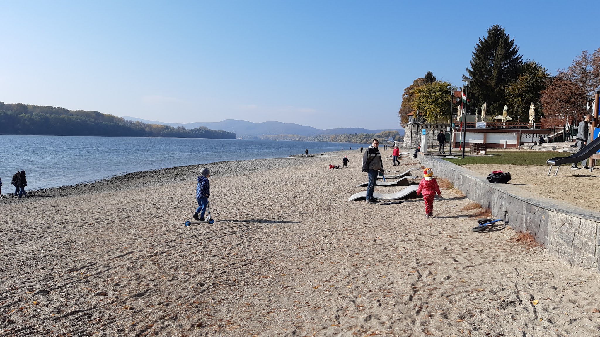 Nekiveselkedtünk a rövid sétának, ami a kicsik számára ezúttal, társaság nélkül, egy mérhetetlenül nehéz és borzalmasan fárasztó teljesítménytúrának tűnt. Egy rövid Duna-parti sétáról beszélünk. Igyekeztünk tartani bennük a lelket, és figyelemelterelő játékokkal húzni nyomorult kis időnket, amíg ki nem borulunk teljesen.