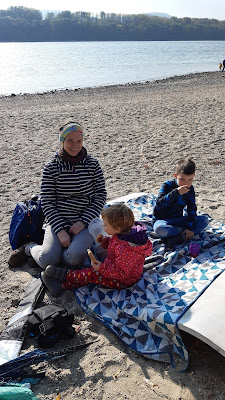 Mi történik, amikor a gyanútlan szülőpár mindössze egy kiscsoportossal és egy nagycsoportossal indul neki a parti sétának? Hiszti, nyavalygás, semmisemjó, pisilnikell, hagyjálbékén, nemveszeksapkát, énisakarom, nemcsúszokle, lecsúszok, gyereteis, negyere, anyujöttpedigmondtamhogynejöjjön, mostazonnalkellminden. Ezek voltak. Néhány kellemes pillanatot leszámítva (ezeket fotóztam) ugráltatva voltunk rendesen. Természetesen a hazafele úton a két alvás ellen protestáló kisembert elnyomta az álom, aminek újabb hiszti lett az eredménye kiszálláskor. Mindez nem panasz, inkább tényközlés. És megnyugtatása mindazoknak, akik azt hiszik, öt gyerekkel minden sokkal nehezebb. Ez egyszerűen nem igaz. Nagyobb adagokat főzök, gyakrabban megy a mosogatógép, sokkal többet mosok, hajtogatok, igen. De az öt gyerek nem lóg állandóan rajtam, mert elvannak egymással – ha együtt vannak.