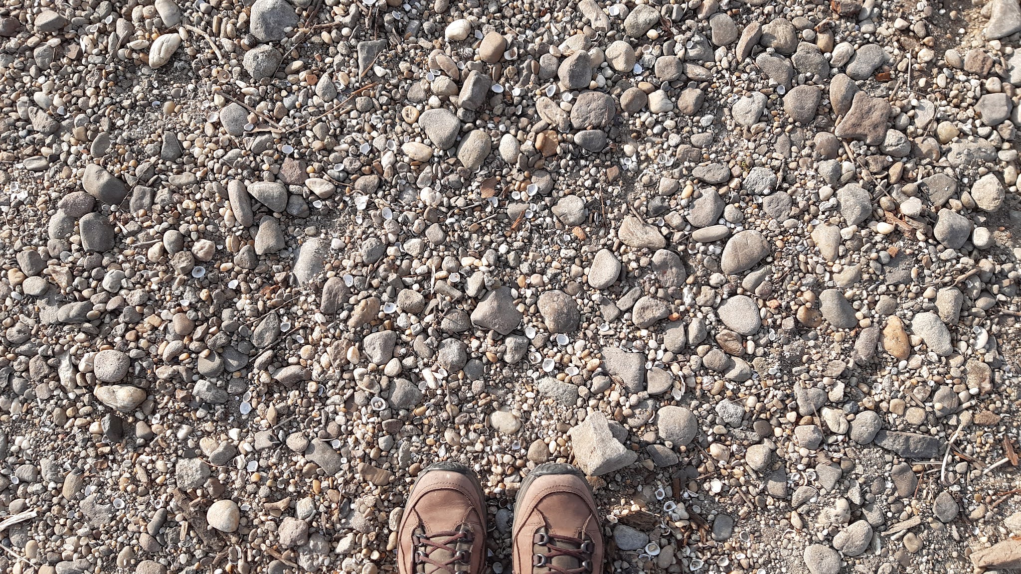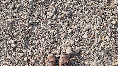 | Alacsony vízállásnál a folyó medrében gyalogoltunk. A bakancs jól esett. |